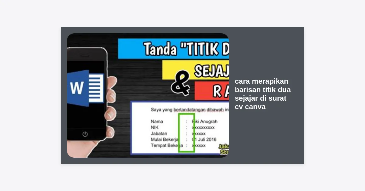 Keuntungan metode ini adalah Anda bisa menggeser barisan titik dua secara utuh tanpa mengganggu teks utama. Ini adalah solusi permanen untuk cara merapikan barisan titik dua sejajar di surat cv canva yang paling presisi.