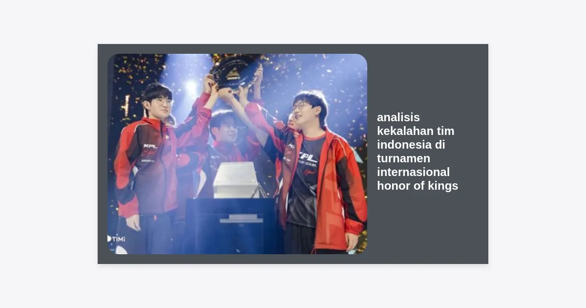 Dunia esports global baru saja menyaksikan lonjakan popularitas yang luar biasa dari Honor of Kings (HOK). Seiring dengan peluncuran globalnya, Indonesia sebagai salah satu pusat kekuatan mobile gaming di Asia Tenggara langsung tancap gas. Namun, realitas di lapangan menunjukkan tantangan yang tidak mudah. Melalui analisis kekalahan tim Indonesia di turnamen internasional honor of kings, kita dapat melihat bahwa meski memiliki bakat individu yang luar biasa, masih ada jurang lebar yang memisahkan tim tanah air dengan dominasi global, terutama dari wilayah China.