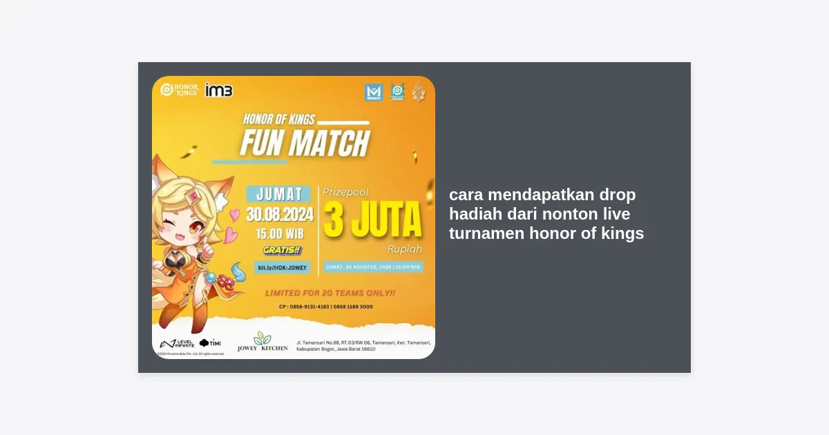 Menjadi salah satu game MOBA seluler paling populer di dunia, Honor of Kings (HOK) tidak hanya menawarkan pengalaman bertarung yang intens di dalam map, tetapi juga ekosistem turnamen esports yang sangat menguntungkan bagi para penggemarnya. Banyak pemain bertanya-tanya tentang cara mendapatkan drop hadiah dari nonton live turnamen honor of kings agar bisa mengoleksi skin eksklusif, hero fragment, hingga diamond secara gratis. Kesempatan ini biasanya muncul saat gelaran besar seperti HOK Championship atau Invitational Series sedang berlangsung.