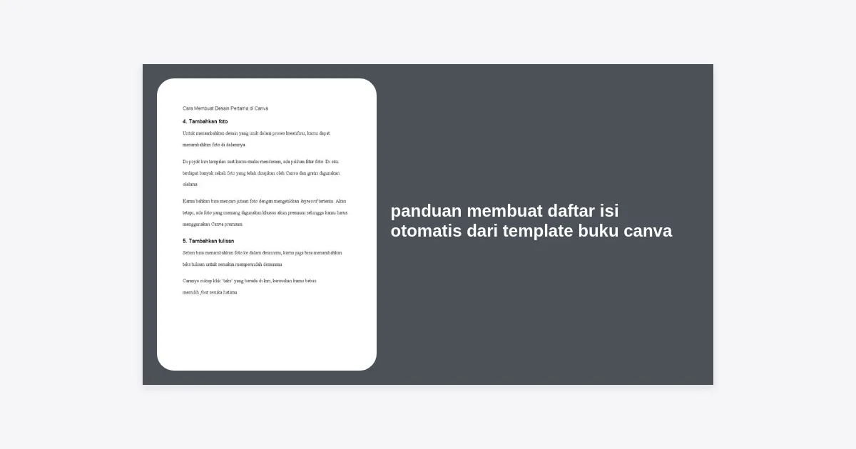 Membuat buku digital atau eBook kini menjadi jauh lebih mudah berkat platform desain grafis seperti Canva. Namun, satu tantangan yang sering dihadapi oleh penulis pemula maupun desainer adalah menyusun navigasi yang efisien. Dalam artikel ini, kita akan membahas secara mendalam panduan membuat daftar isi otomatis dari template buku canva agar karya Anda terlihat profesional dan mudah dinavigasi oleh pembaca.
