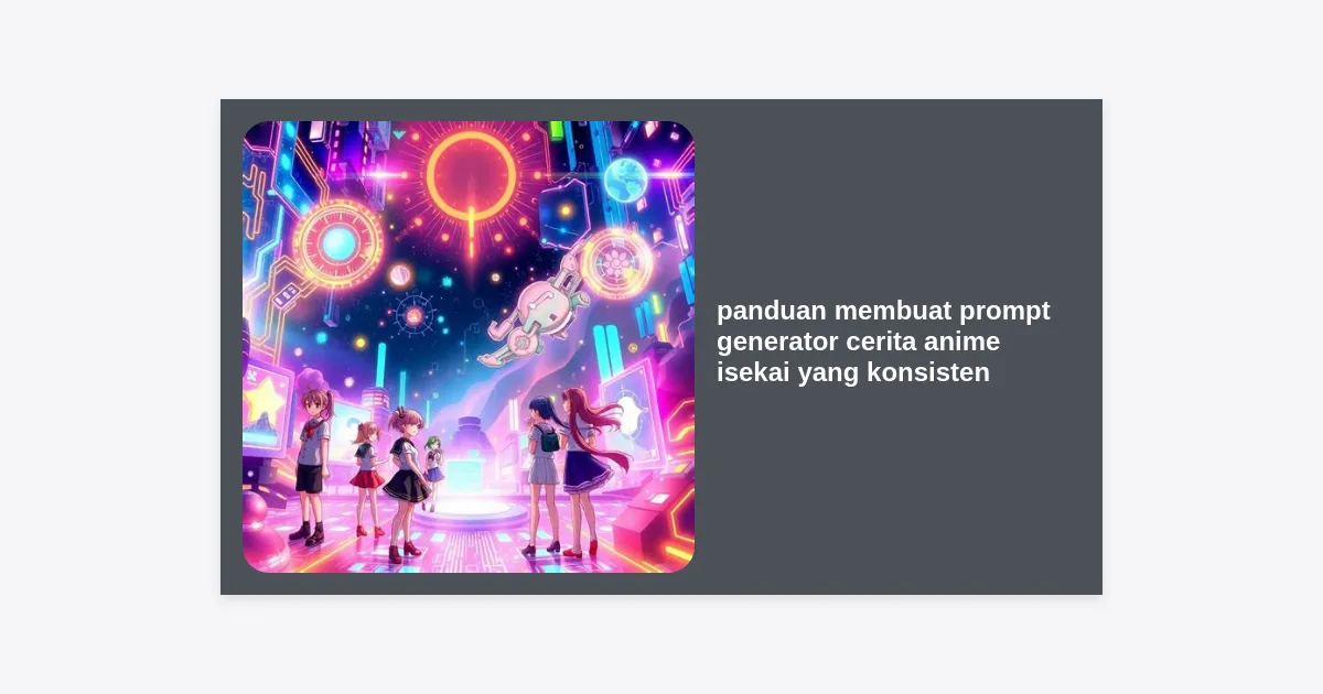 Berikut adalah panduan membuat prompt generator cerita anime isekai yang konsisten yang bisa Anda ikuti langkah demi langkah: