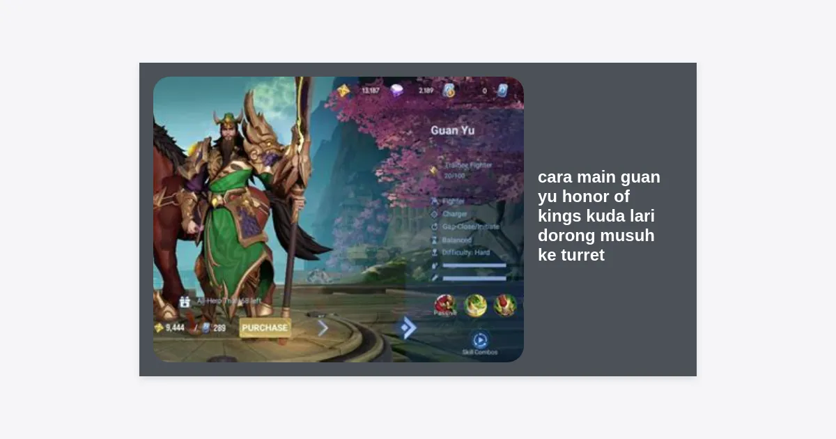 Pernahkah Anda merasa frustrasi saat berhadapan dengan pemain yang sangat lihai dalam menerapkan cara main Guan Yu Honor of Kings kuda lari dorong musuh ke turret? Di tangan yang tepat, Guan Yu bukan sekadar hero fighter biasa; ia adalah mesin pemecah formasi yang mampu memporak-porandakan strategi lawan dalam sekejap. Menguasai mobilitas tinggi dan efek knockback-nya adalah kunci untuk mendominasi Clash Lane maupun saat melakukan roaming.